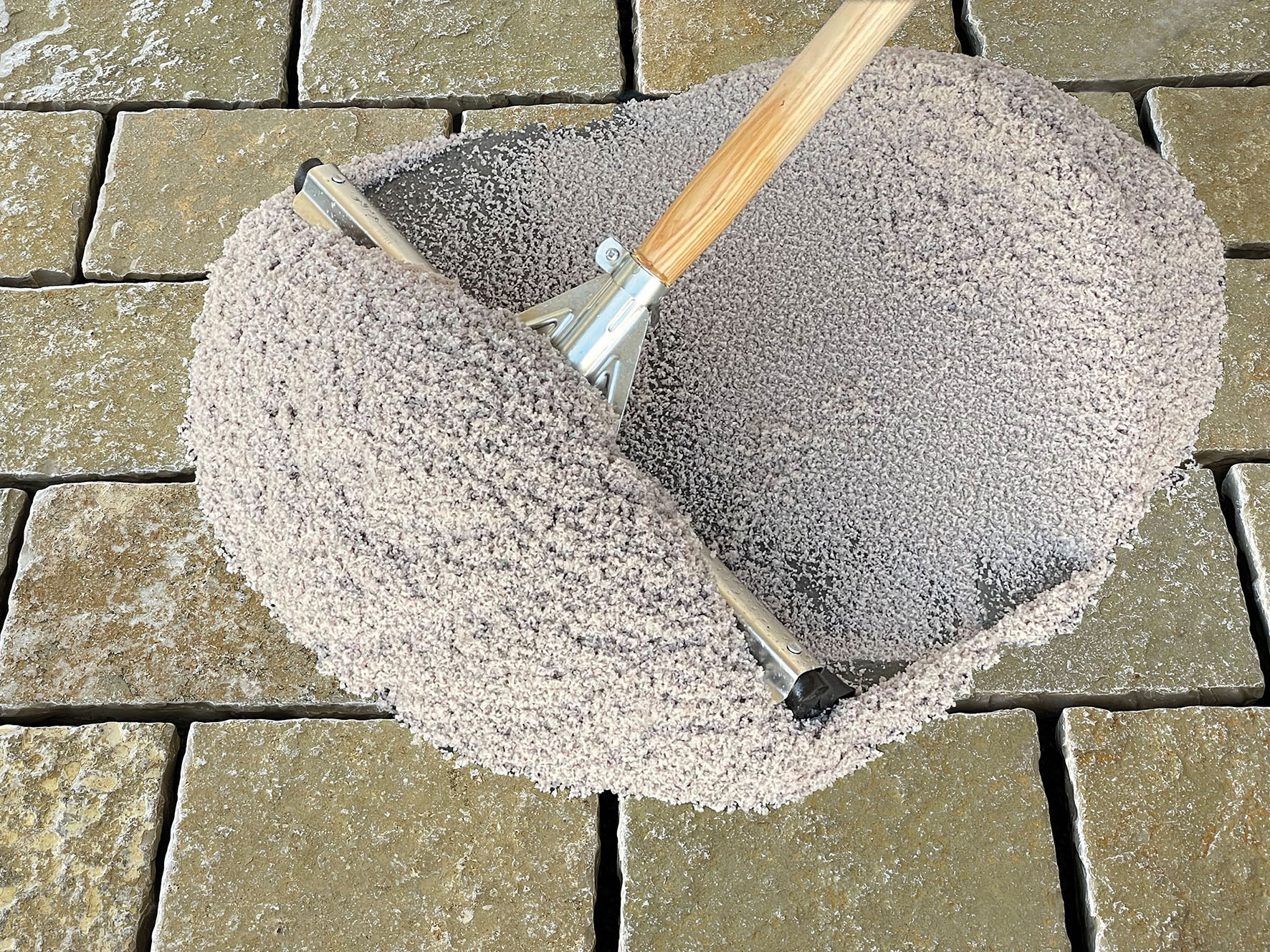 Les joints doivent être nettoyés sans résidus de mauvaises herbes, de racines et de parties non adhérentes sur une profondeur minimale de 25 mm (en cas de trafic, 2/3 de la hauteur de la pierre). Le revêtement à jointoyer doit être débarrassé de toutes les saletés. Les zones adjacentes qui ne doivent pas être traitées, seront protégées ou recouvertes. Assurez un support stable et durablement perméable à l’eau, adapté à la charge attendue (respectez les normes et directives en vigueur).