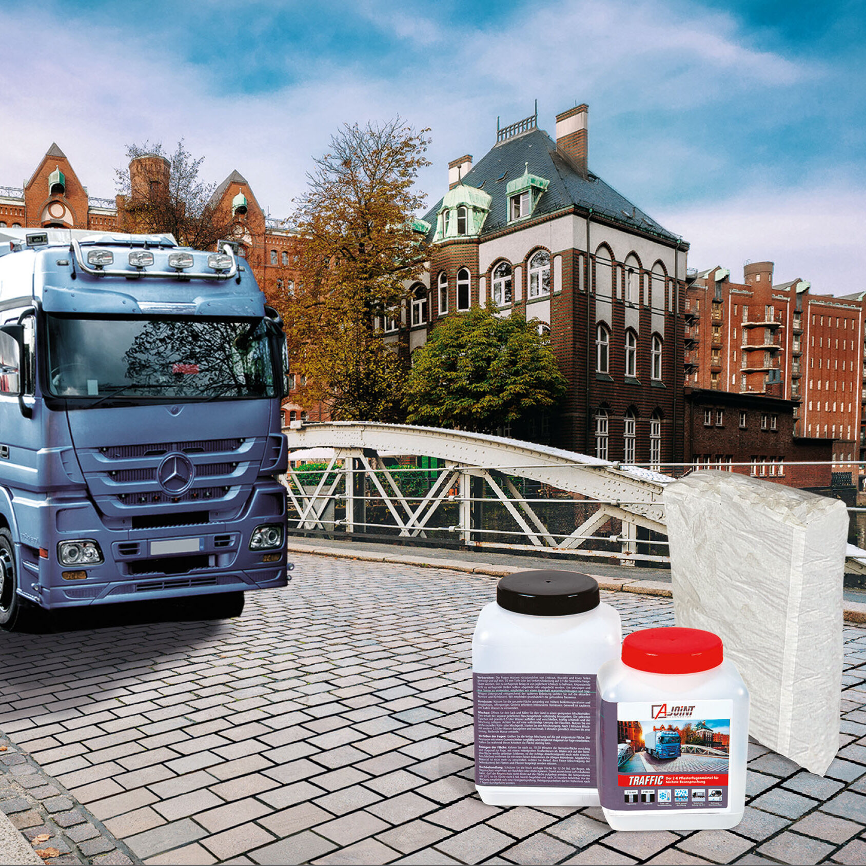 A-Joint® Traffic est particulièrement adapté aux places, routes et chemins publics très fréquentés ainsi qu’aux caniveaux pavés.